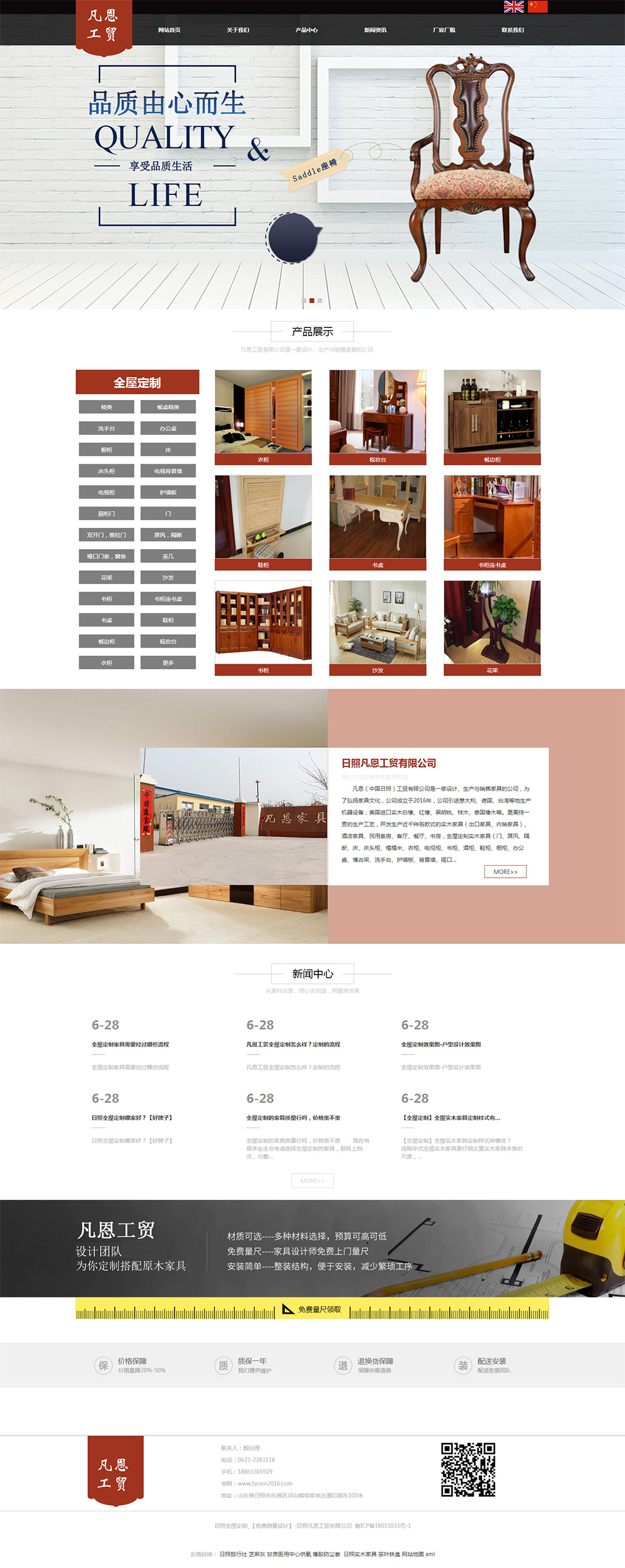 • 凡恩(中國日照)工貿有限公司是一家設計、生產與銷售家具的公司,為了弘揚家具文化,公司成立于2016年,公司引進意大利、德國、臺灣等地生產機器設備,美國進口實木白橡、紅橡、黑胡桃、櫸木、泰國橡木等。更秉持一貫的生產工藝,開發(fā)生產近千種各款式的實木家具(出口家具、內銷家具)、酒店家具、民用套房、客廳、餐廳、書房,全屋定制實木家具(門、屏風、隔斷、床、床頭柜、榻榻米、衣柜、電視柜、書柜、酒柜、鞋柜、櫥柜、辦公桌、博古架、洗手臺、護墻板、背景墻、啞口套、餐桌、餐椅、沙發(fā)、茶幾、花架)等產品:以質量好、款式多、價格