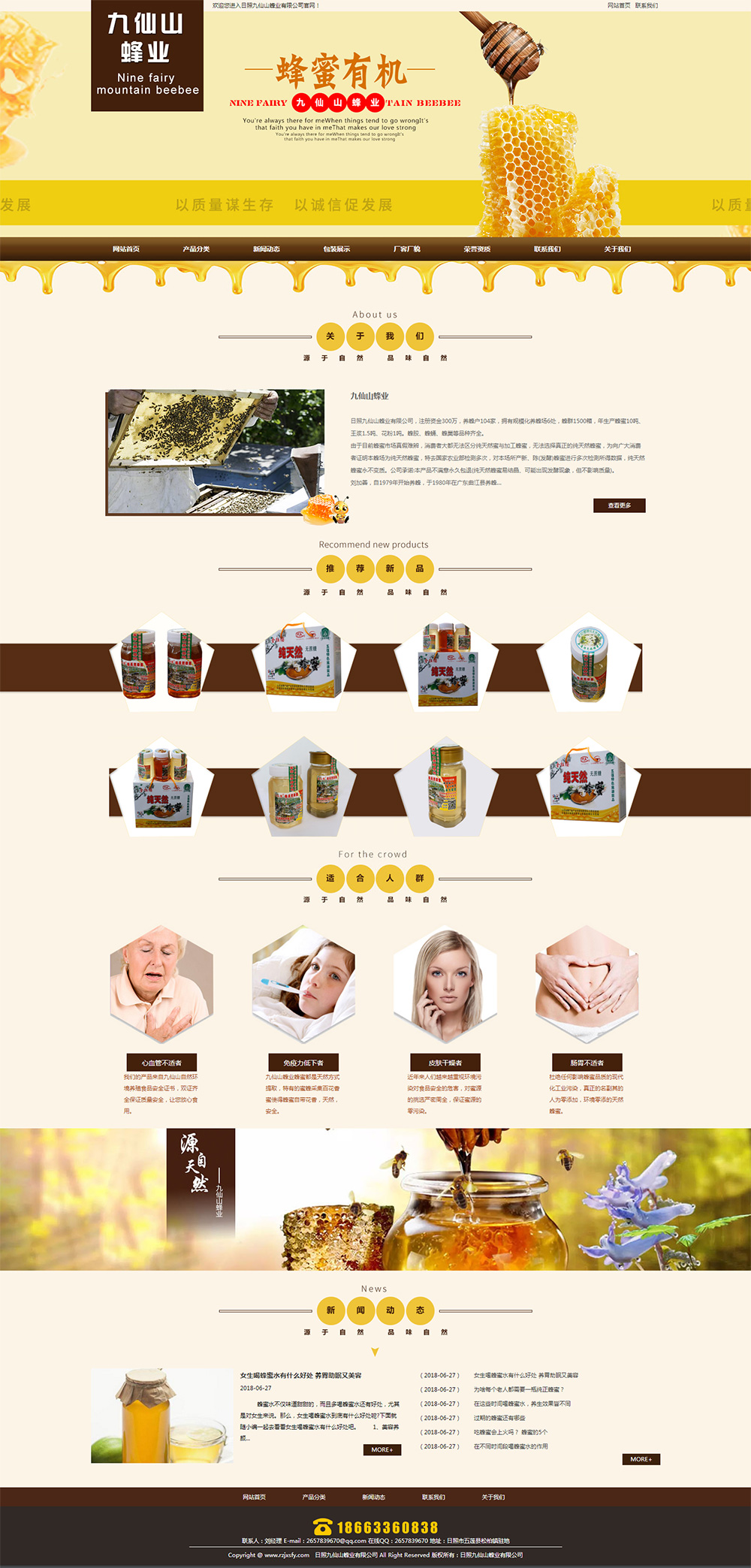 • 日照九仙山蜂業(yè)有限公司,注冊資金300萬,養(yǎng)蜂戶104家,擁有規(guī)?;B(yǎng)蜂場6處,蜂群1500箱,年生產(chǎn)蜂蜜10噸、王漿1.5噸、花粉1噸。蜂膠、蜂蛹、蜂巢等品種齊全。 由于目前蜂蜜市場真假難辨,消費者大都無法區(qū)分天然蜜與加工蜂蜜,無法選擇真正的天然蜂蜜,為向廣大消費者證明本蜂場為天然蜂蜜,特去國家農(nóng)業(yè)部檢測多次,對本場所產(chǎn)新、陳(發(fā)酵)蜂蜜進行多次檢測所得數(shù)據(jù),天然蜂蜜永不變質(zhì)。公司承諾:本產(chǎn)品不滿意永久包退(天然蜂蜜易結(jié)晶、可能出現(xiàn)發(fā)酵現(xiàn)象,但不影響質(zhì)量)。