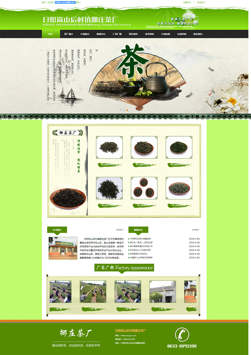 • 日照嵐山后村鎮(zhèn)挪莊茶廠位于風(fēng)景秀麗的黃海之濱日照市嵐山區(qū),是山東省第一家進(jìn)行日照綠茶產(chǎn)業(yè)化綜合開(kāi)發(fā)的大型茶場(chǎng),被日照市政府定為重點(diǎn)扶持的農(nóng)業(yè)產(chǎn)業(yè)化龍頭企業(yè),被國(guó)家農(nóng)業(yè)部、國(guó)家工商局、國(guó)家藥品食品監(jiān)督管理局等六大部委評(píng)為"2003年度全國(guó)食品安全示范單位"中的唯一茶葉企業(yè),被中國(guó)食品檢驗(yàn)協(xié)會(huì)評(píng)為"國(guó)家質(zhì)量檢測(cè)合格產(chǎn)品",被日照市工商局、質(zhì)量技術(shù)監(jiān)督局、衛(wèi)生局等多家單位聯(lián)合評(píng)為"日照市消費(fèi)者滿意單位"等榮譽(yù),被中國(guó)消費(fèi)者基金會(huì)評(píng)為"中國(guó)消費(fèi)者信譽(yù)品牌",2005年在中國(guó)第三屆(日照)國(guó)際茶博覽會(huì)名優(yōu)茶評(píng)選中再